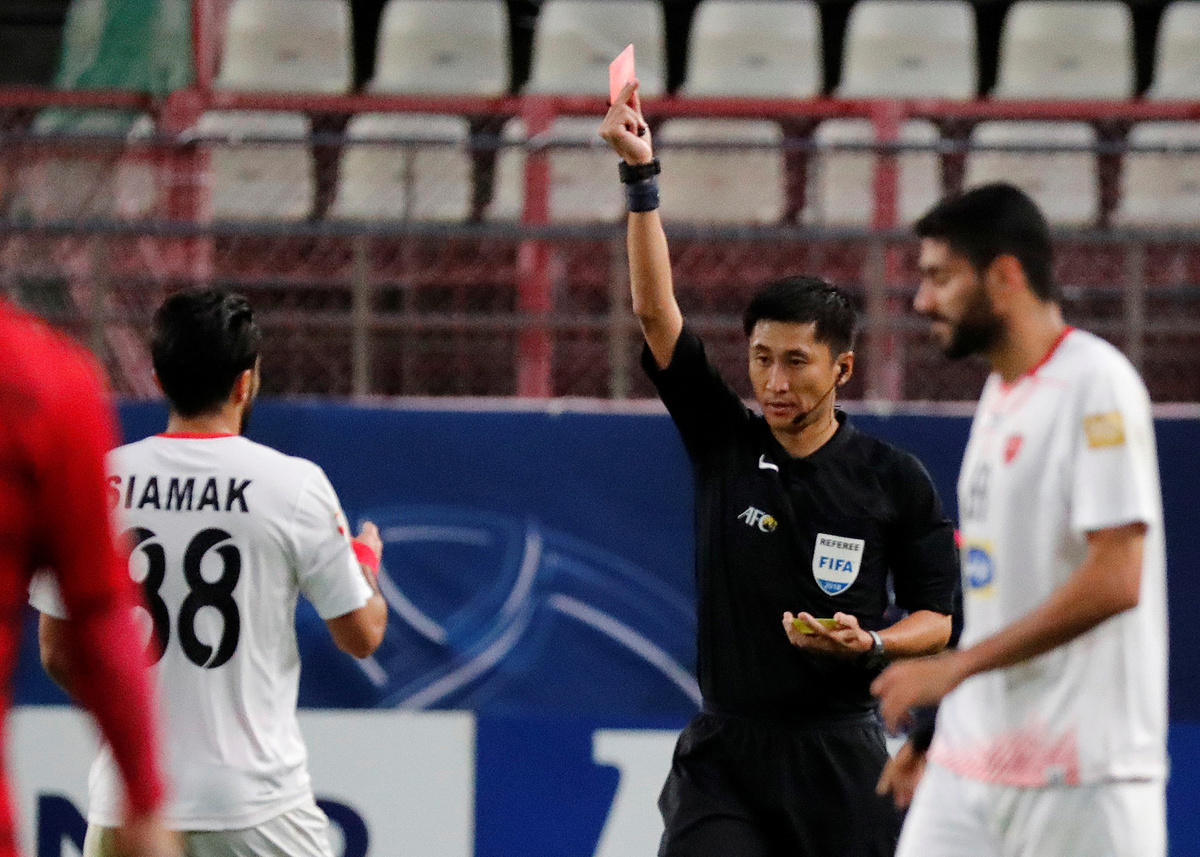 Soccer Football - Asian Champions League - Final - First Leg - Kashima Antlers v Persepolis FC - Kashima Soccer Stadium, Kashima, Japan - November 3, 2018 Persepolis FC's Siamak Nemati reacts after being sent off by referee Ma Ning REUTERS/Toru Hanai