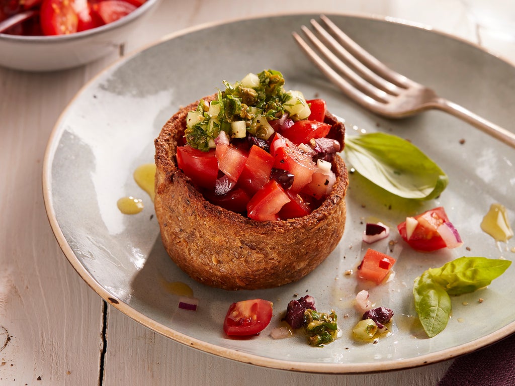 10. Finish with a little spoon of the tomatoes and basil into the middle.