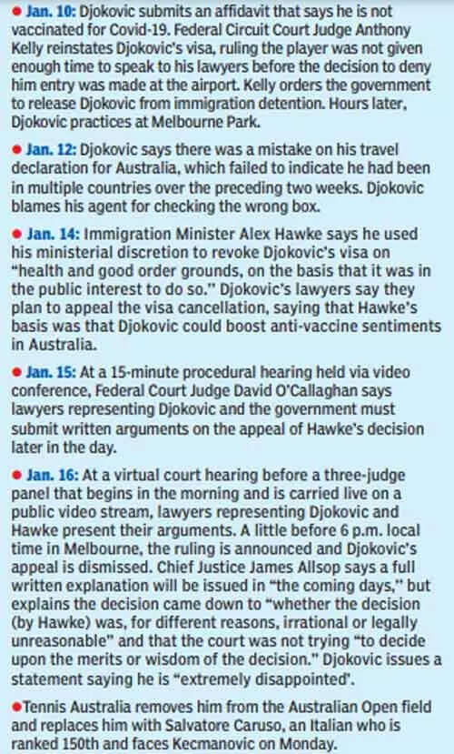 MELBOURNE: The day before the Australian Open was set to begin, Novak Djokovic, possibly the greatest tennis player of all time, ran up against a group of determined opponents that no amount of talent, training, money or willpower could overcome.
