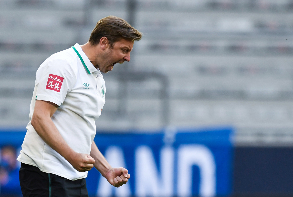 Soccer Football - Bundesliga - Schalke 04 v Werder Bremen - Veltins-Arena, Gelsenkirchen, Germany - May 30, 2020 Werder Bremen coach Florian Kohfeldt celebrates after the match, as play resumes behind closed doors following the outbreak of the coronavirus disease (COVID-19) Bernd Thissen/Pool via REUTERS