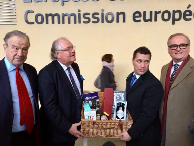 The campaigners claimed the basket of tasty delights would help Michael Barnier, the chief EU negotiator, “fully grasp the powerful commercial position Britain occupies globally”.