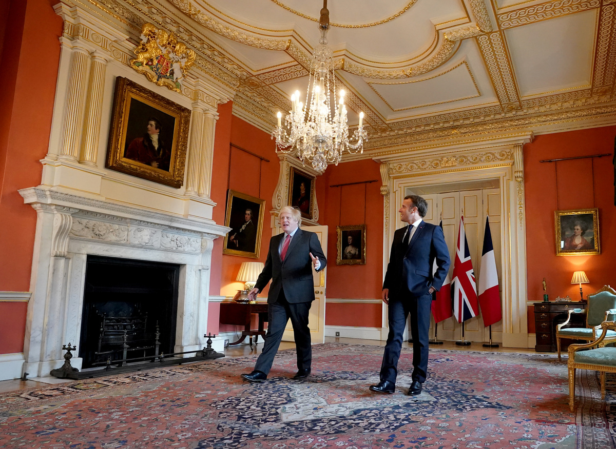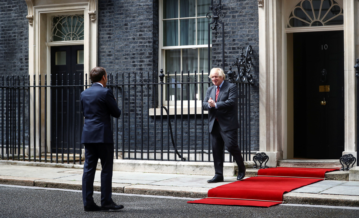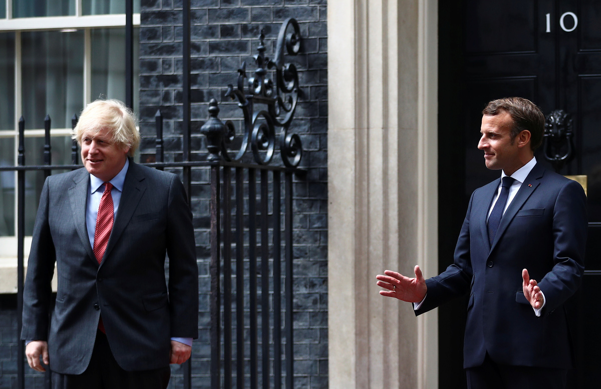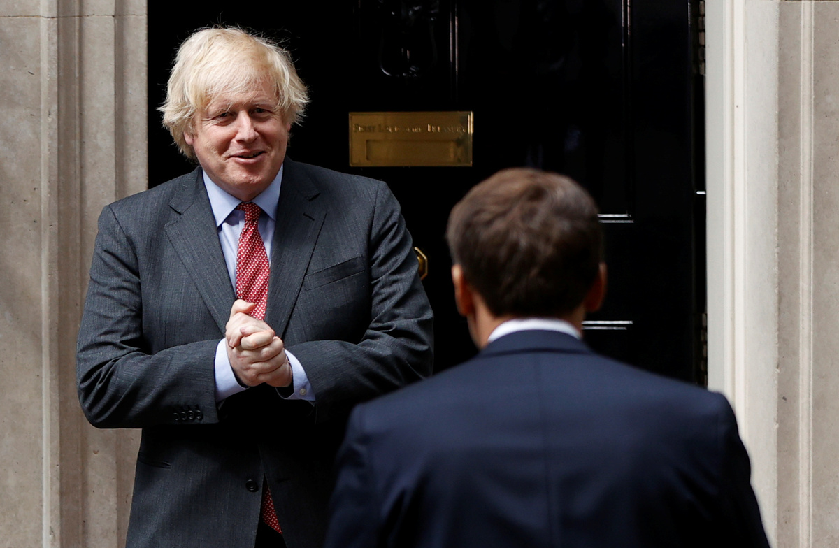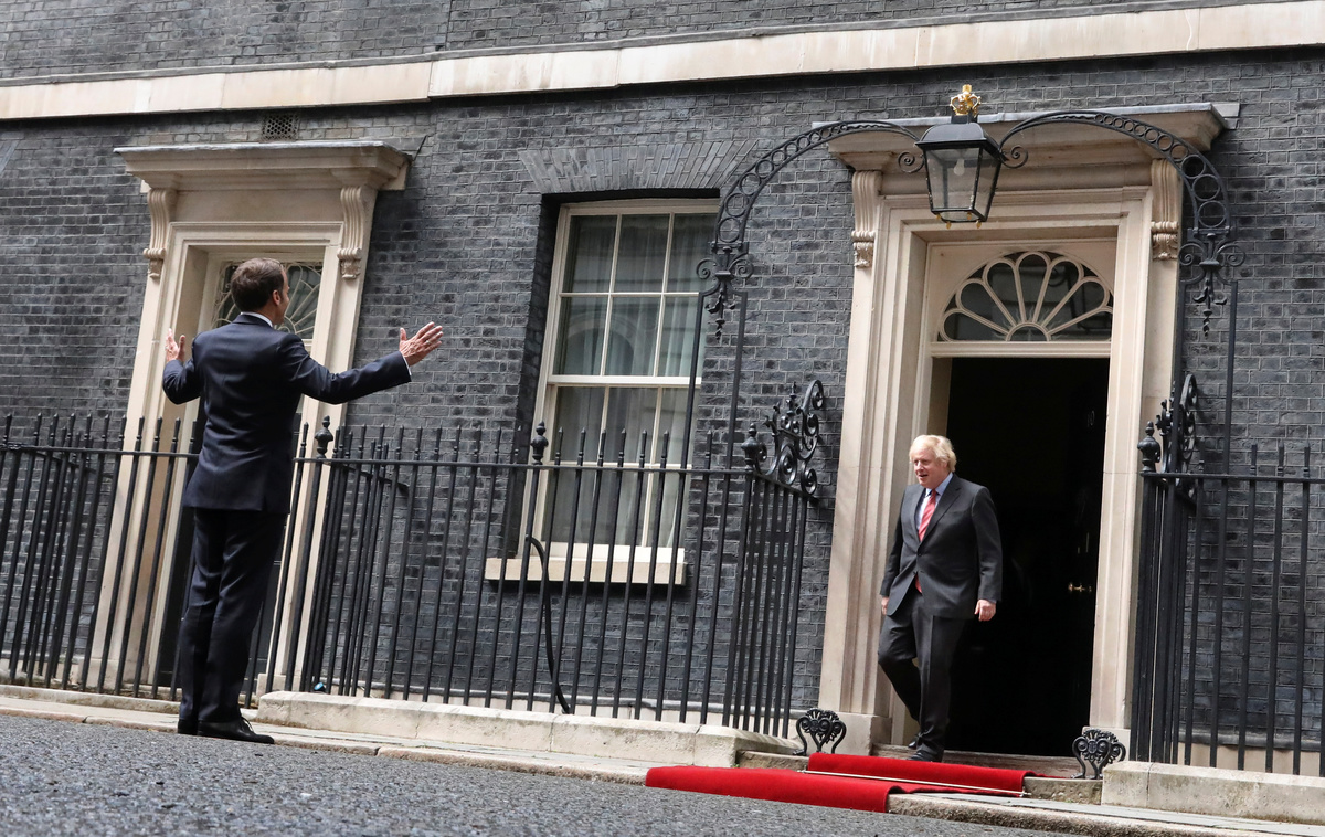British Prime Minister Boris Johnson meets with French President Emmanuel Macron in London, Britain, June 18, 2020. Andrew Parsons/10 Downing Street/Handout via REUTERS THIS IMAGE HAS BEEN SUPPLIED BY A THIRD PARTY. IMAGE CAN NOT BE USED FOR ADVERTISING OR COMMERCIAL USE. IMAGE CAN NOT BE ALTERED IN ANY FORM. NO RESALES. NO ARCHIVES