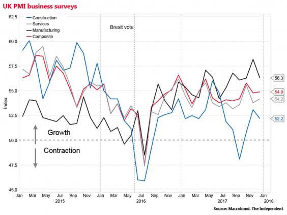 PMIs for construction and manufacturing earlier this week also showed expansion in December, although construction was still hampered by Brexit uncertainty.