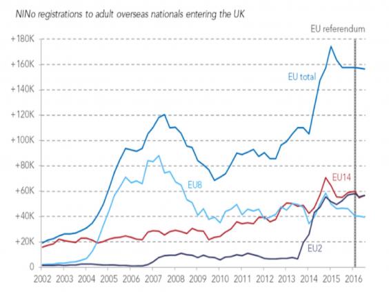 In an analysis published Thursday the Resolution Foundation think tank highlights official data showing that new National Insurance registrations by EU migrants have plateauted since the referendum.