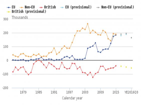 Provisional net immigration figures released in February from the ONS also point to a slower rate of EU immigration to the UK in the third quarter of last year, directly after the referendum.
