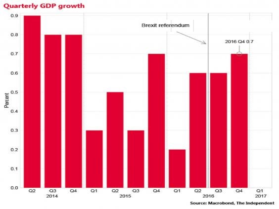 The Office for Budget Responsibility in November forecast a sharp slowdown in UK growth to 1.4 per cent in 2017.