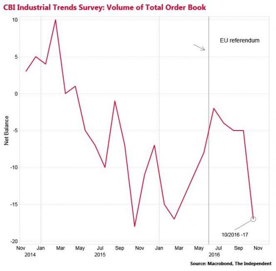 The total order book balance was -17 in the month according to the CBI’s latest survey, down from -5 in September.