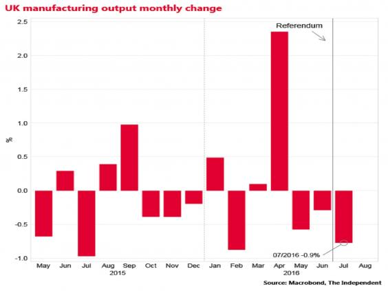 Manufacturing output contracted in July according to the Office for National Statistics, undershooting expectations and undermining the sense that the sector has emerged unscathed from the shock of the Brexit referendum result.