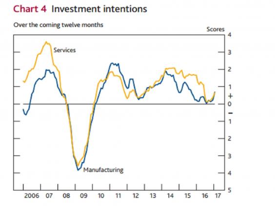 The Bank of England expects business investment to contract by a further 0.25 per cent this year, before growing by 1.25 per cent in 2018.