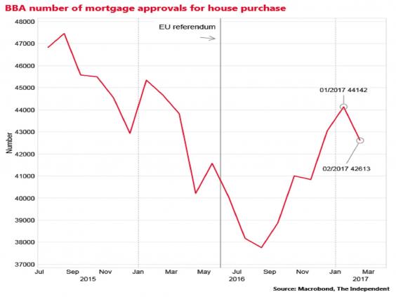 According to the BBA there were 42,613 such loans made by high street banks in the month, down from a post-Brexit referendum peak of 44,142 in January.