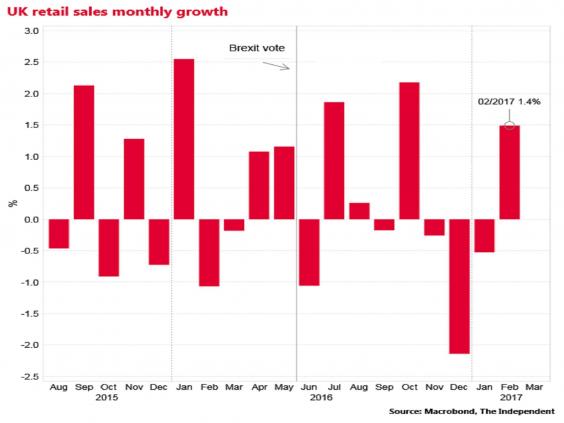 The data ends a run of three consecutive months of declines, which has been interpreted as a possible sign the UK consumer is running out of steam.