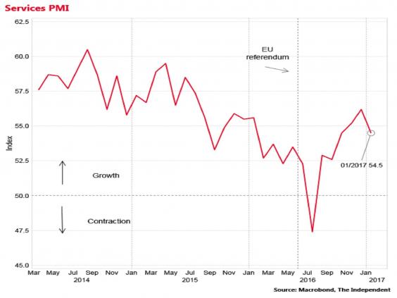 Services, which account for around 80 per cent of UK output, have driven the economy since 2013 and have been almost entirely responsible for the maintenance of GDP momentum since last June's Brexit referendum