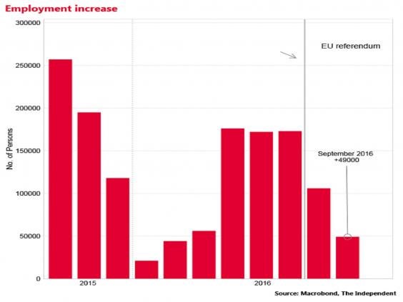 "Today's figures confirmed the indications from the surveys that the leave vote is starting to sap the jobs recovery of its previous strength," said Ruth Gregory of Capital Economics.