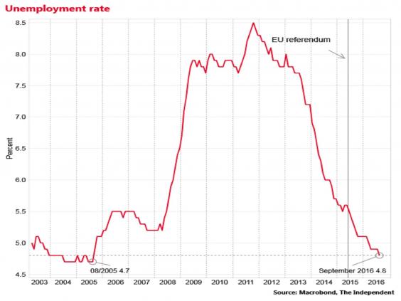 The Office for National Statistics reported that the jobless rate edged down to 4.8 per cent in September, from 4.9 per cent previously, the lowest rate since since the summer of 2005.