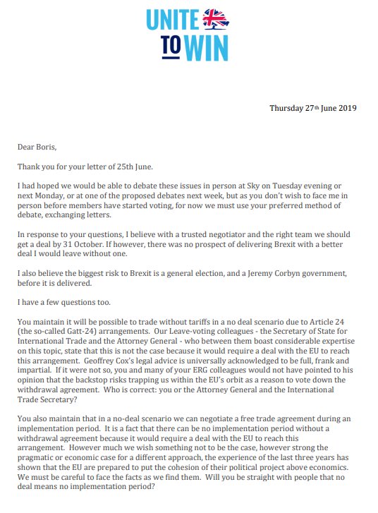 The Tory leadership frontrunner confirmed the option was on the table after Jeremy Hunt urged him to be “straight with the people” and accused him of getting “some important facts wrong”.