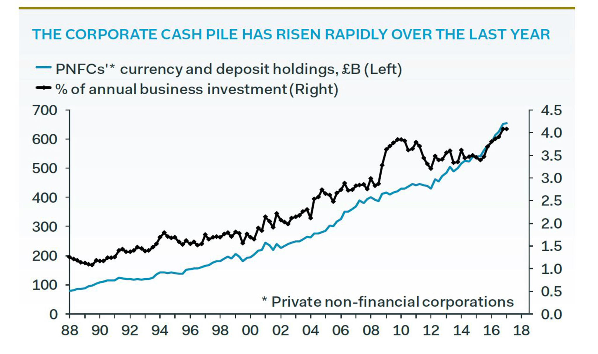 Uncertainty around Brexit has caused firms to stockpile unprecedented levels of savings while investment has stagnated, according to a recent research note by Pantheon Macroeconomics.