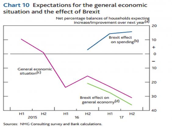 The proportion of of people who expect Brexit to result in an increase in their own household spending actually rose relative to the second half of 2016, but the Bank said this was likely to reflect higher inflation this year, stemming from the plunge in sterling on the night of the referendum.