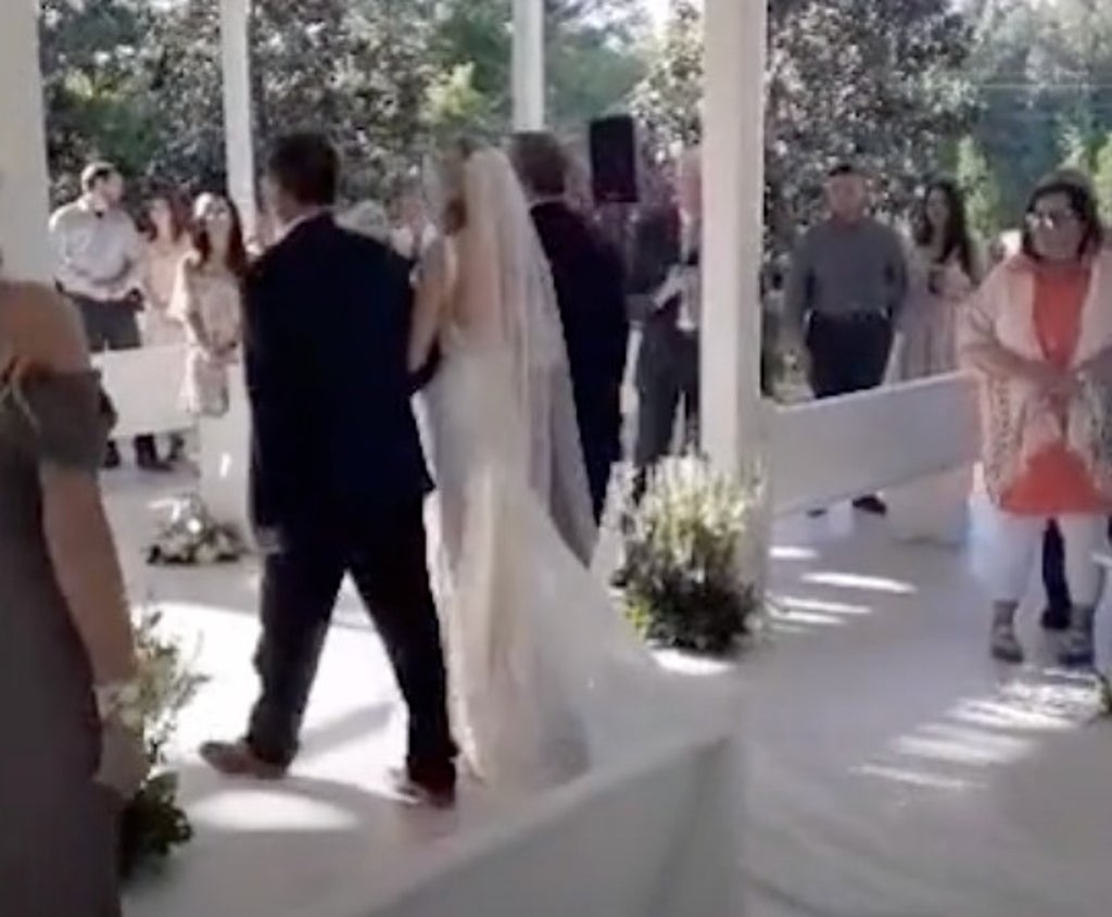 A bride’s father stopped as he walked his daughter down the aisle to include her stepfather in the wedding.