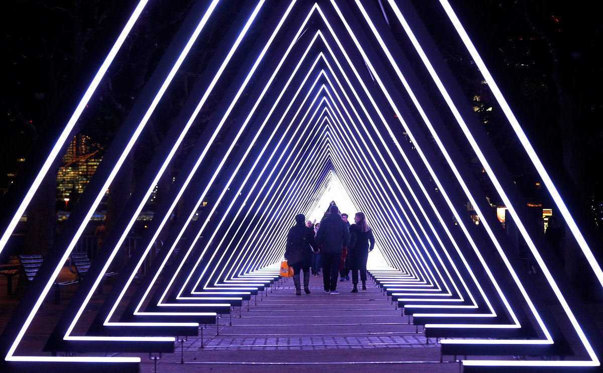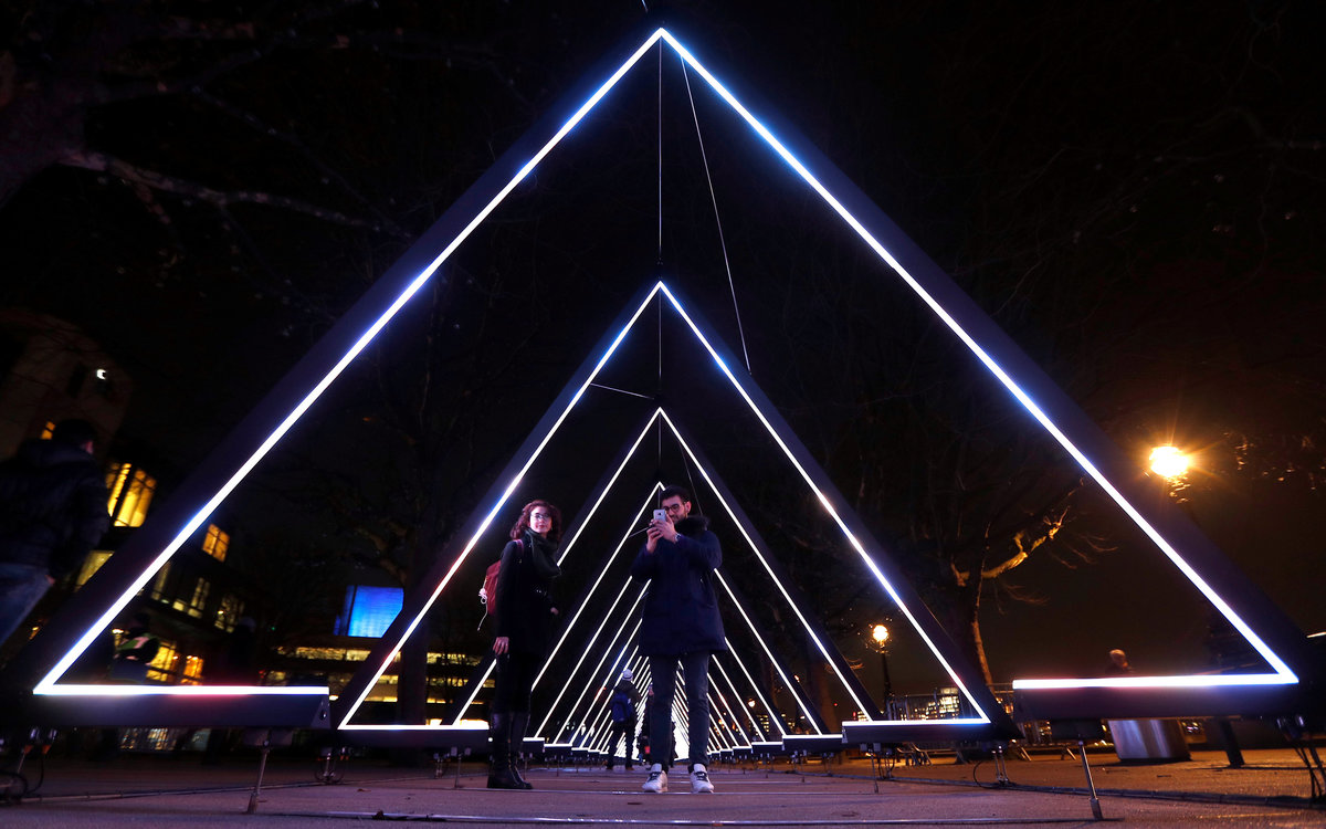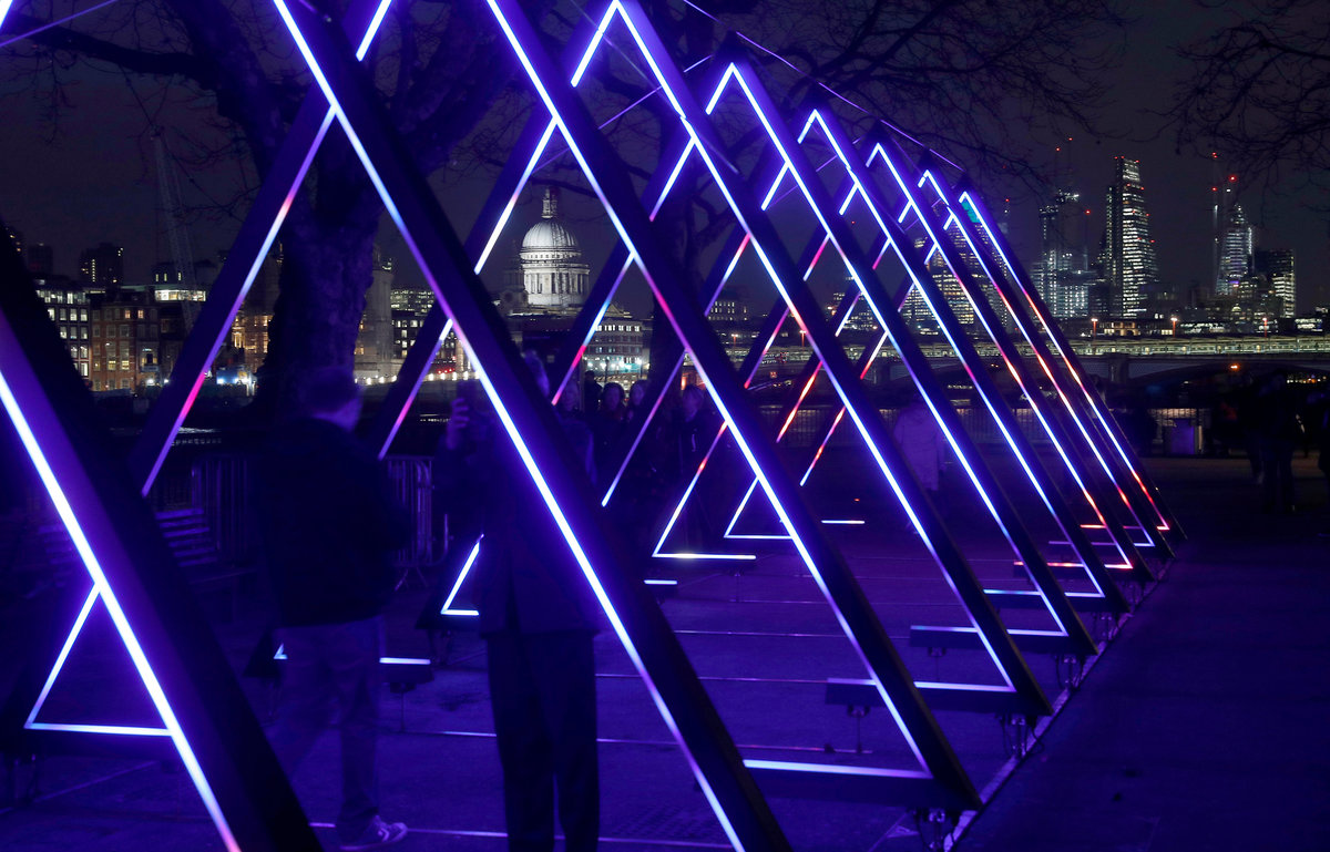 Visitors to the South Bank walk through The Wave, by Vertigo, one of several light installations placed around the capital which together form the Lumiere London festival, in London, Britain, January 17, 2018 REUTERS/Peter NichollsVisitors to the South Bank look at The Wave, by Vertigo, one of several light installations placed around the capital which together form the Lumiere London festival, in London, Britain, January 17, 2018 REUTERS/Peter Nicholls