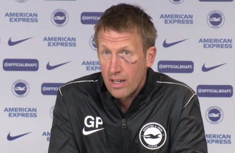 Potter was unable to hide a big bruise below his left eye and a sizeable gash on his cheek when speaking at his press conference ahead of the Seagulls’ trip to Sheffield United.