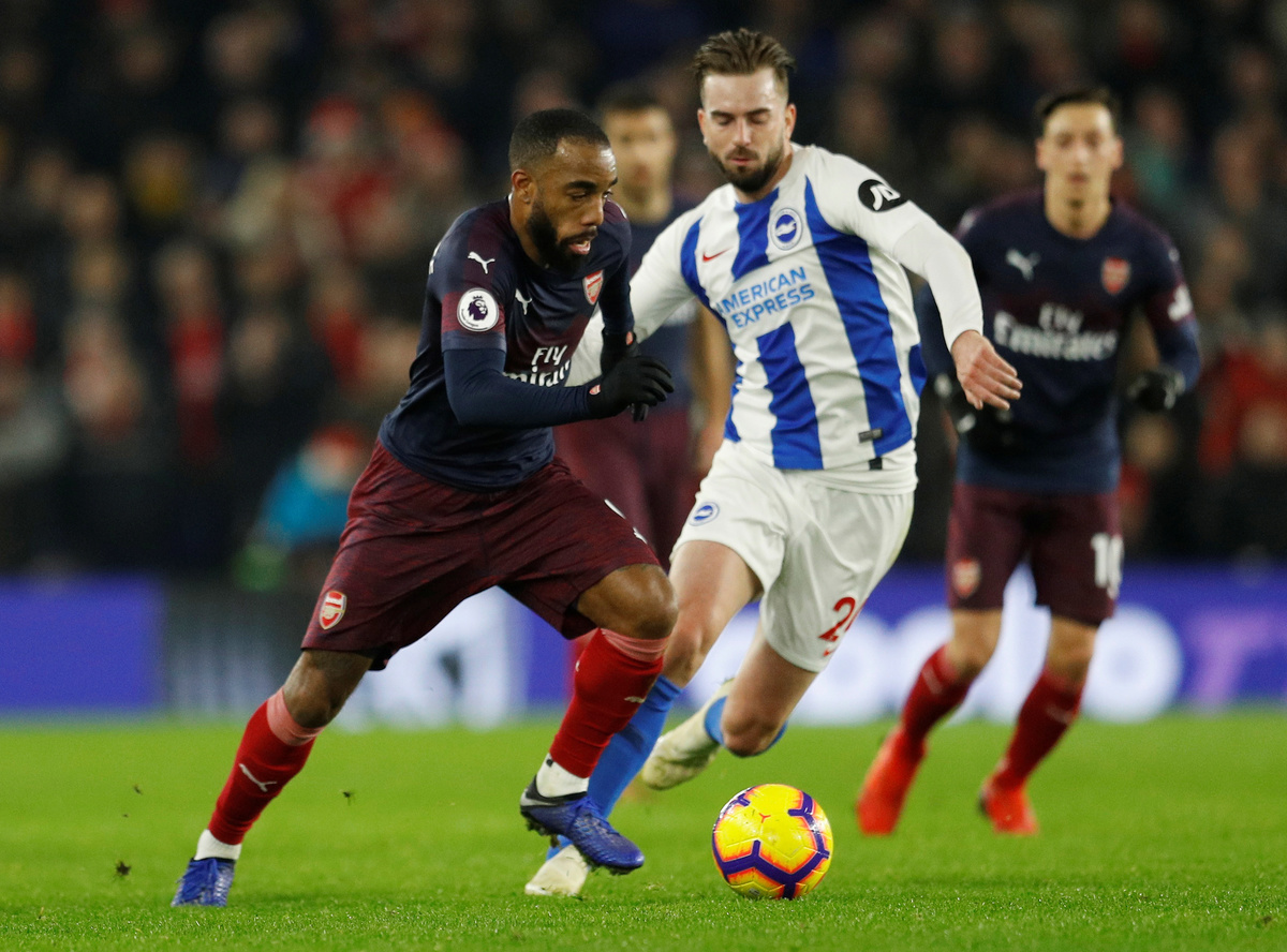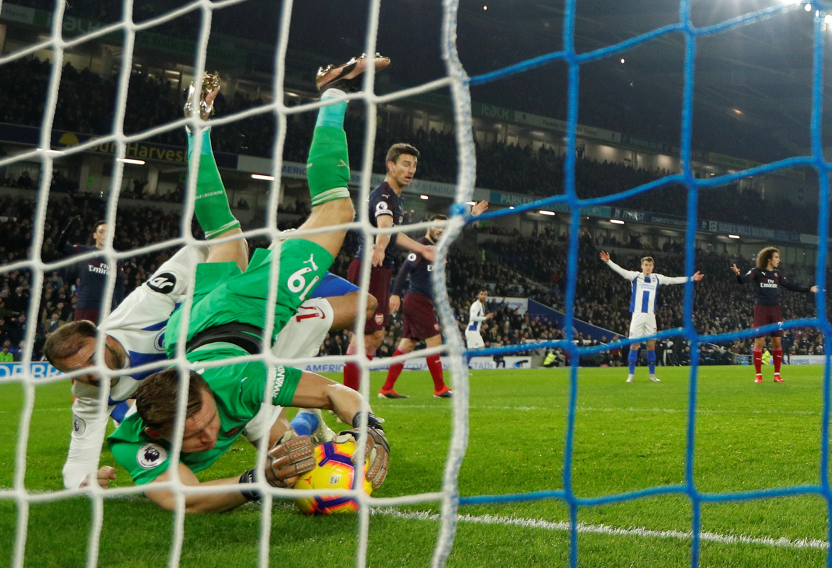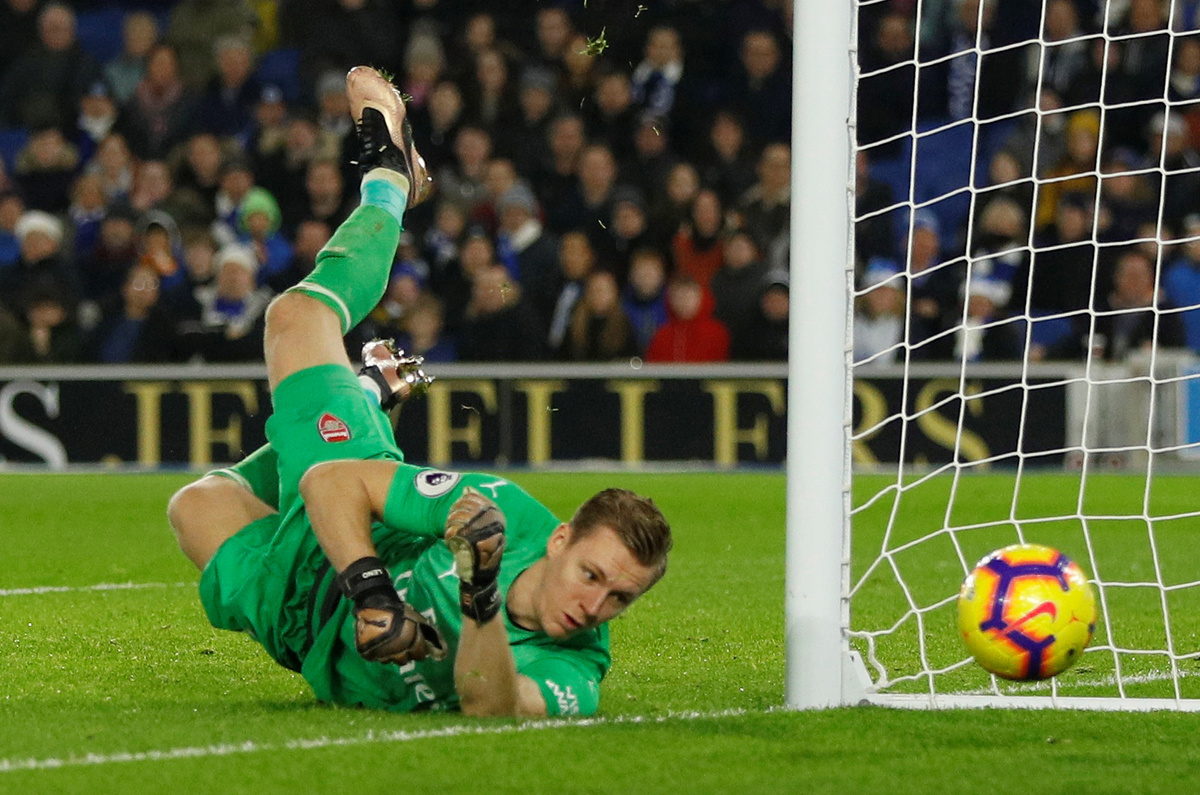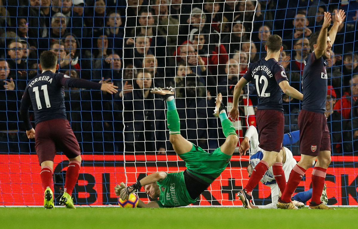 Soccer Football - Premier League - Brighton & Hove Albion v Arsenal - The American Express Community Stadium, Brighton, Britain - December 26, 2018 Arsenal's Bernd Leno in action REUTERS/Peter Nicholls Soccer Football - Premier League - Brighton & Hove Albion v Arsenal - The American Express Community Stadium, Brighton, Britain - December 26, 2018 Arsenal's Pierre-Emerick Aubameyang in action with Brighton's Shane Duffy and Mathew Ryan (L) Action Images via Reuters/John Sibley Soccer Football - Premier League - Brighton & Hove Albion v Arsenal - The American Express Community Stadium, Brighton, Britain - December 26, 2018 Arsenal's Lucas Torreira in action with Brighton's Pascal Gross REUTERS/Peter Nicholls Soccer Football - Premier League - Brighton & Hove Albion v Arsenal - The American Express Community Stadium, Brighton, Britain - December 26, 2018 Arsenal's Matteo Guendouzi in action with Brighton's Davy Propper REUTERS/Peter Nicholls Soccer Football - Premier League - Brighton & Hove Albion v Arsenal - The American Express Community Stadium, Brighton, Britain - December 26, 2018 Arsenal's Alexandre Lacazette in action with Brighton's Davy Propper REUTERS/Peter Nicholls Soccer Football - Premier League - Brighton & Hove Albion v Arsenal - The American Express Community Stadium, Brighton, Britain - December 26, 2018 Arsenal's Bernd Leno in action with Brighton's Glenn Murray as Arsenal's Sokratis Papastathopoulos reacts REUTERS/Peter Nicholls