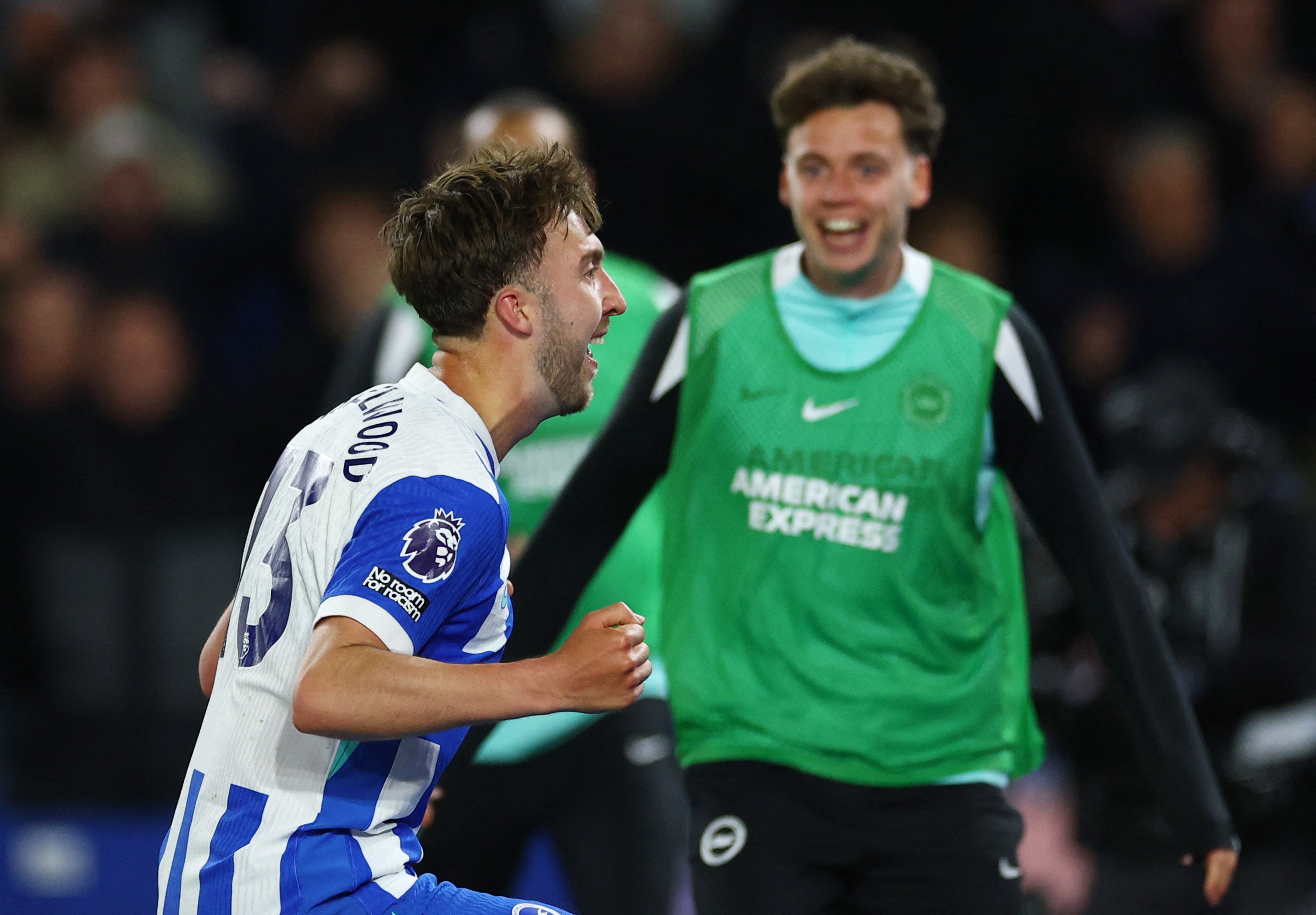 Tuesday 21 April 2026 20:12 , Jamie Braidwood11 mins: Brighton are pinging the ball around quite comfortably, with the home fans even starting to cheer the odd pass around the back. Delap is frustrated by the offside flag and there are some boos for the returning Cucurella.