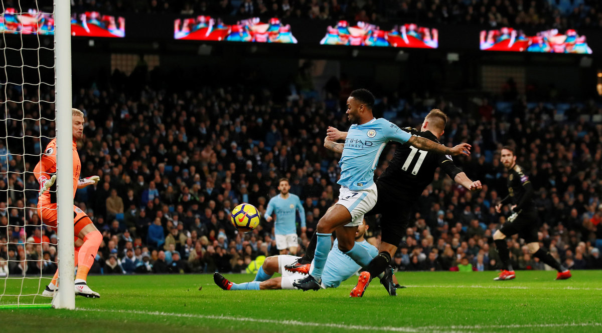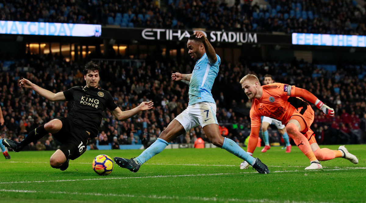Soccer Football - Premier League - Manchester City vs Leicester City - Etihad Stadium, Manchester, Britain - February 10, 2018 Manchester City's Raheem Sterling scores their first goal Action Images via Reuters/Jason Cairnduff