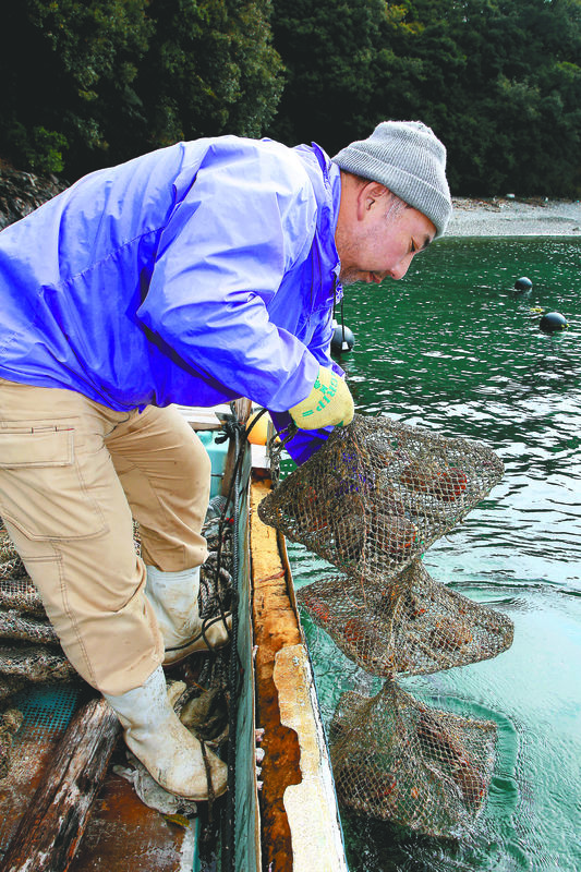 "The flavor is subtle. It definitely beats regular scallops," said Takao Takioka, 88, who in addition to operating Minshuku Beach has been in shellfish cultivation for more than 30 years. He smiled as he exchanged a look with his son and planned successor, Koji, 52.