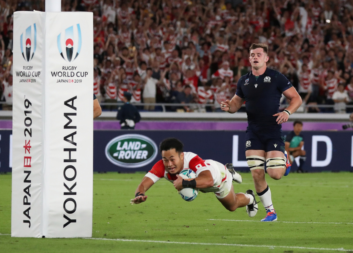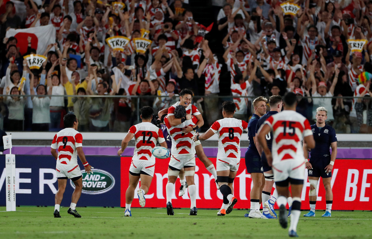 YOKOHAMA, Japan (Reuters) - Japan produced a scintillating display of attacking rugby to beat Scotland 28-21 and reach the Rugby World Cup quarter-finals for the first time on Sunday, lifting the nation still reeling from the deadly impact of Typhoon Hagibis.