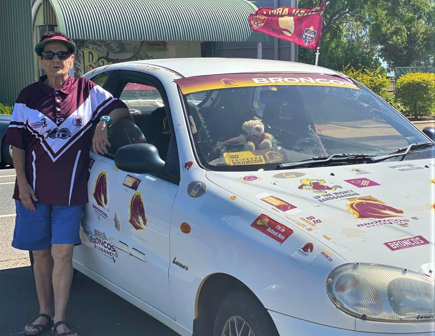 Lifetime Sandgoanna's member and die-hard Broncos fan, Viv Johnsen, gave the boys a letter to deliver to her favourite Bronco, Allan Langer.