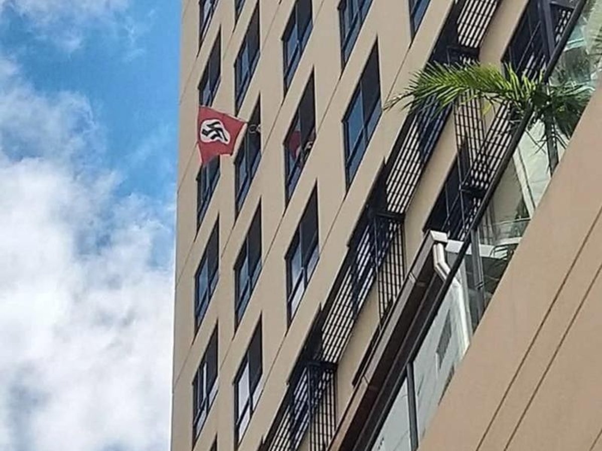 "This is sickening. For someone to fly this symbol of hatred and genocide right above the Brisbane Synagogue on Margaret St is pure evil," Cr Schrinner wrote on social media, posting images of the incident.