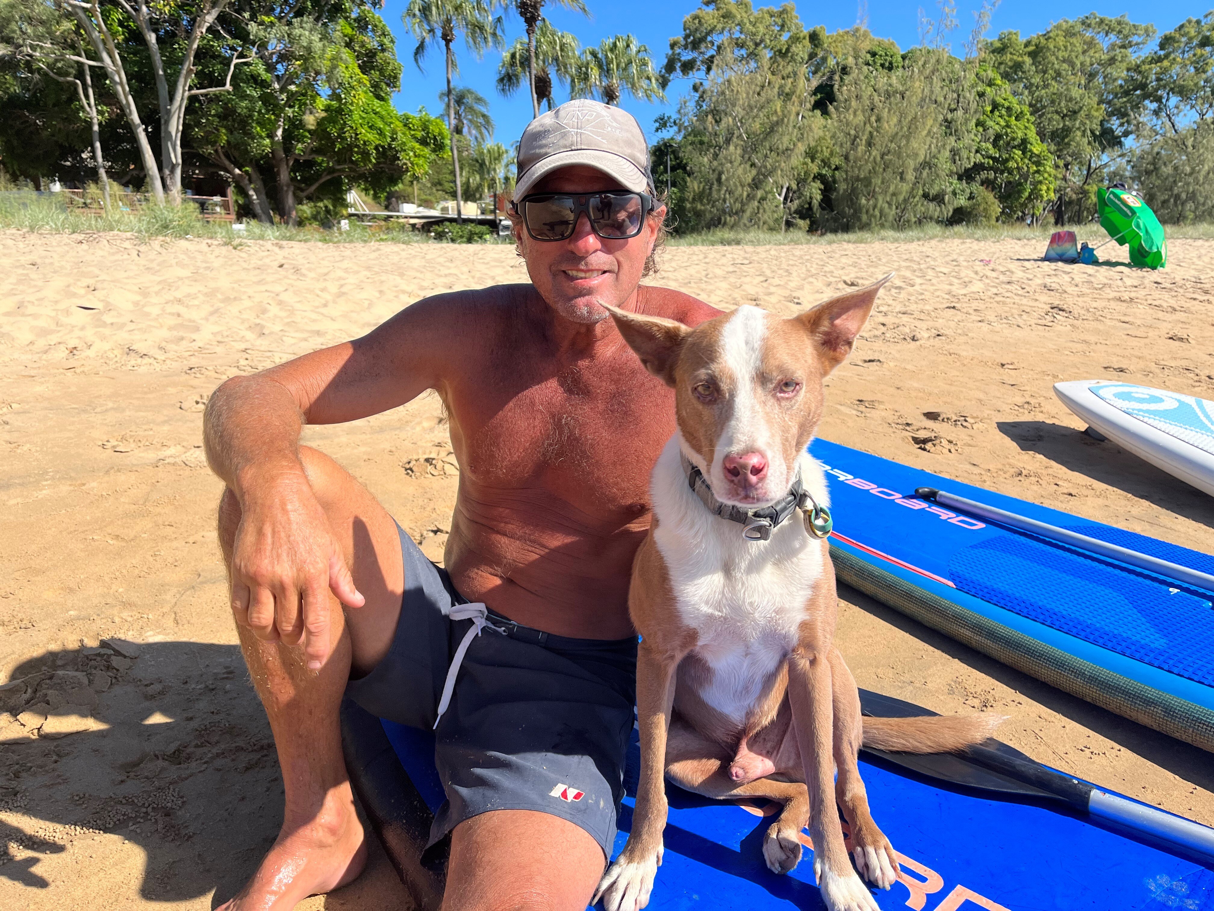 Chris De Aboitiz runs a stand-up paddleboard hire company alongside his trusty dog, Rama.