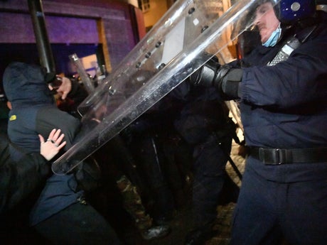 Protesters on Friday night had initially sat down in the street at 10pm once officers had called for them to disperse, with the police then moving in on the crowd.