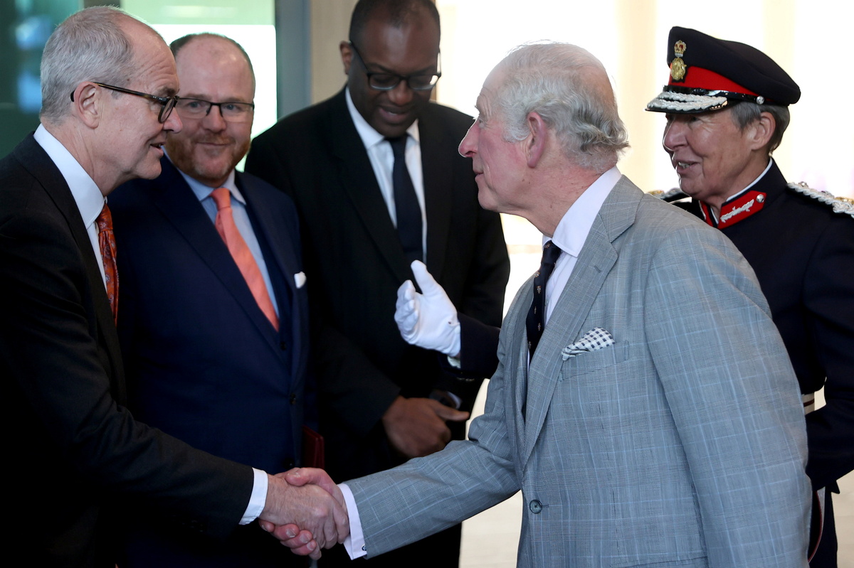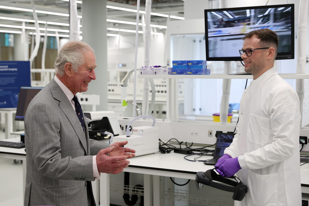 Prince Charles, son of Queen Elizabeth and heir to the throne, saw an exhibit on the pandemic and a demonstration of how augmented reality headsets can help with lab work, before hearing about the company's net-zero targets.
