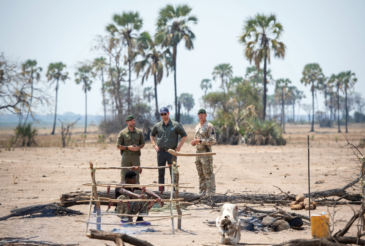 Harry, whose tour of southern Africa has taken him to four countries, observed a simulated anti-poaching operation by Malawian rangers and British soldiers aimed at protecting endangered species such as elephants and rhinos.
