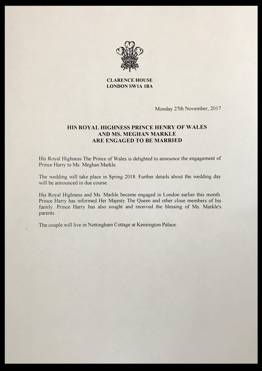 Harry, 33, Queen Elizabeth's grandson and fifth-in-line to the British throne, and Markle, 36, best known for her role in the U.S. TV legal drama "Suits", said they had got engaged in London this month and will wed in the spring next year.