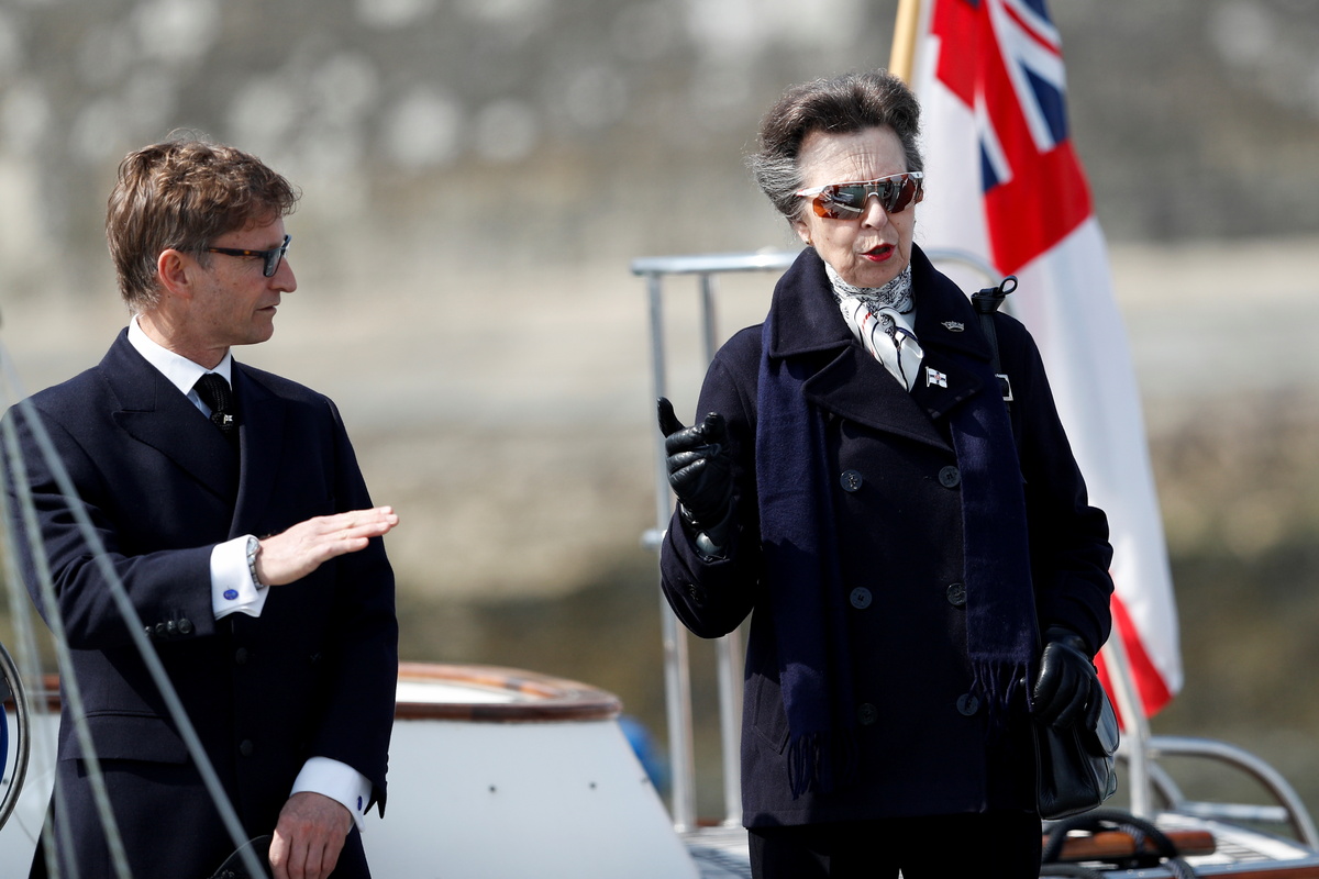 Britain's Princess Anne looks on as she visits the Royal Yacht Squadron, after Prince Philip, husband of Queen Elizabeth, died at the age of 99, in Cowes on the Isle of Wight, Britain April 14, 2021. REUTERS/Peter Nicholls