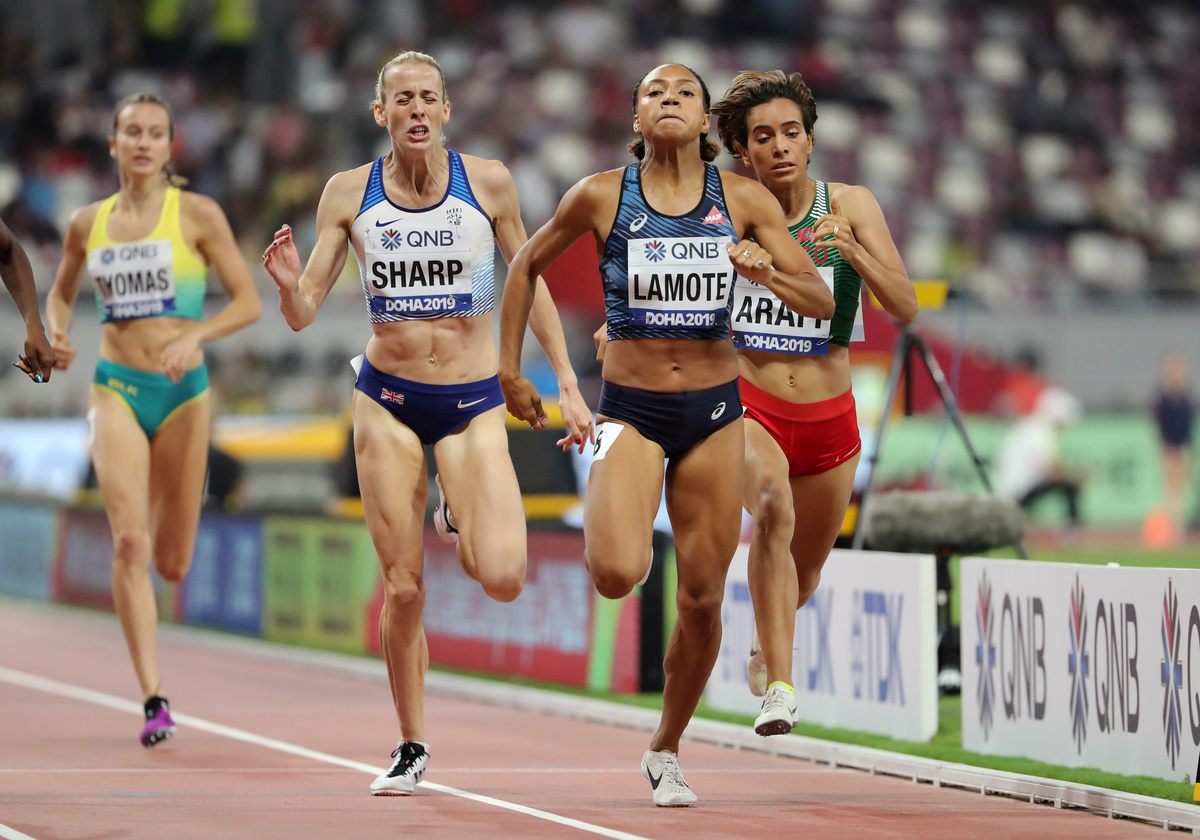 DOHA (Reuters) - Britain's Lynsey Sharp, one of the expected medal contenders in the women's 800 metres at the world championships, was surprisingly eliminated in her opening heat on Friday after running out of gas down the final straight.