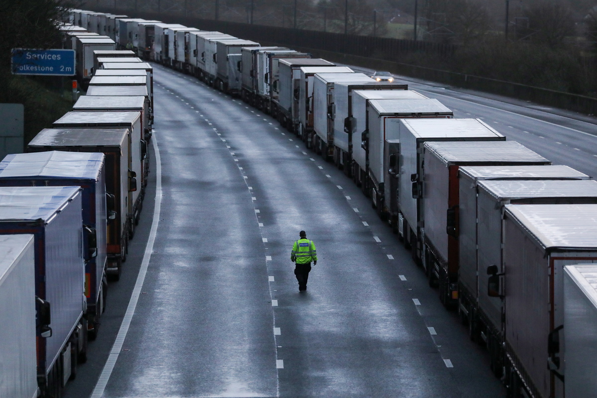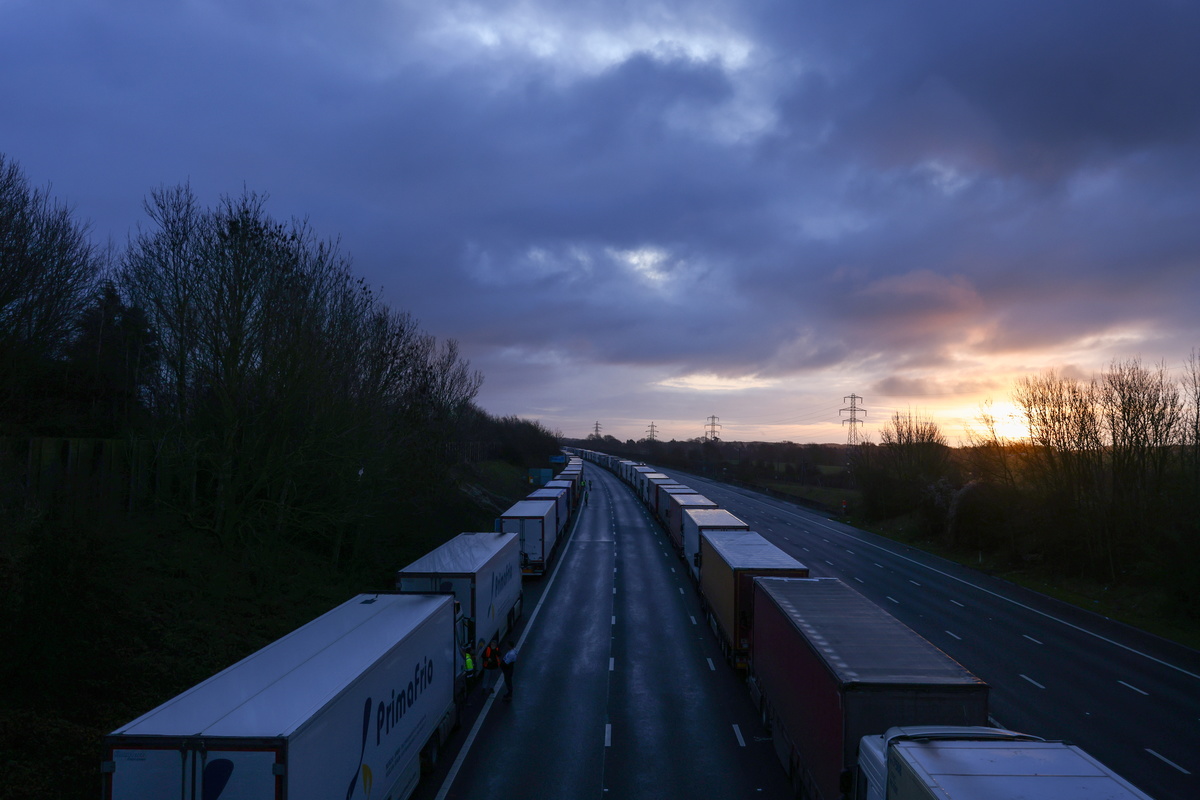 Britain said 632 trucks were stacked up on the M20 motorway in Kent, southern England, and 2,188 at nearby Manston Airport, now being used as a giant lorry park. The government said additional toilets and food vendors were being arranged, after the Road Haulage Association raised concerns about drivers' welfare.