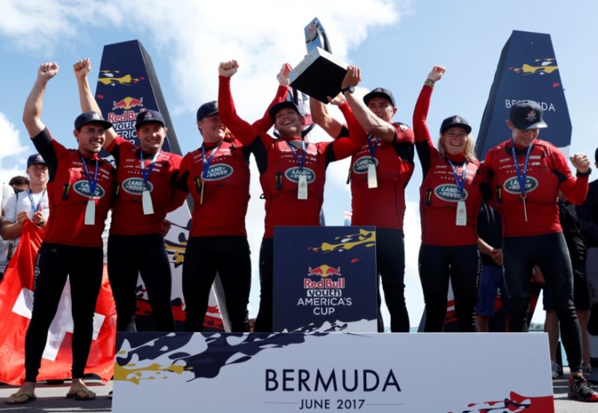 The youth cup was fought out on the Great Sound where Emirates Team New Zealand and holders Oracle Team USA are due to resume battle on Saturday for the America's Cup, the oldest trophy in international sport and sailing's most coveted prize.