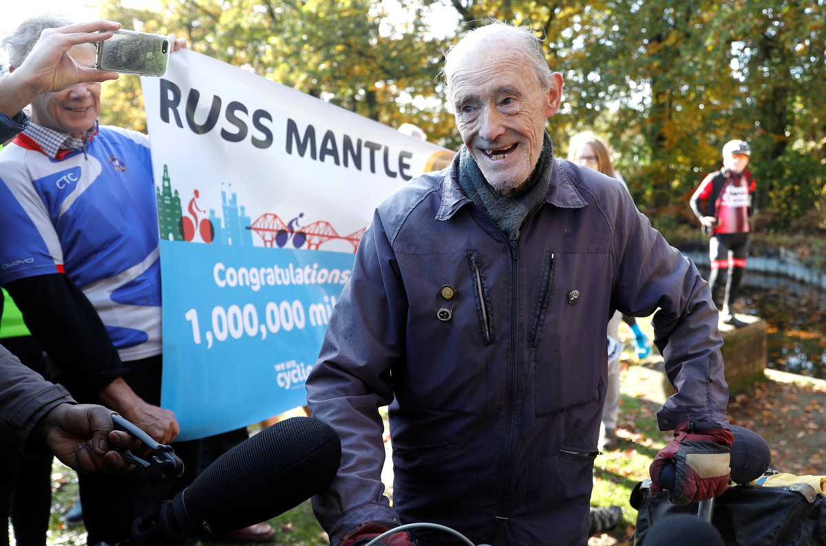 82 year old cyclist Russ Mantle celebrates after cycling his millionth mile following a ride in Mytchett, near Aldershot, Britain November 7, 2019. REUTERS/Peter Nicholls82 year old cyclist Russ Mantle drinks sparkling wine as he celebrates after cycling his millionth mile in Mytchett, near Aldershot, Britain November 7, 2019. REUTERS/Peter Nicholls82 year old cyclist Russ Mantle celebrates after cycling his millionth mile during a ride in Mytchett, near Aldershot, Britain November 7, 2019. REUTERS/Peter Nicholls82 year old cyclist Russ Mantle leaves his home as he prepares for a cycle ride during which he will complete his millionth mile, in Aldershot, Britain November 7, 2019. REUTERS/Peter Nicholls82 year old cyclist Russ Mantle celebrates after cycling his millionth mile during a ride in Mytchett, near Aldershot, Britain November 7, 2019. REUTERS/Peter Nicholls