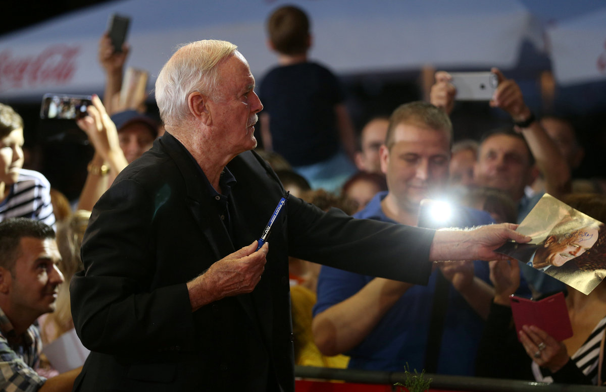 Cleese, best known as a member of the famous comedy team Monty Python's Flying Circus, received a standing ovation from fans at the open-air venue where he gave an acceptance speech.