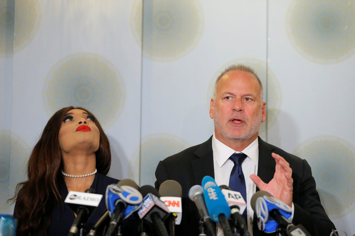 Aspiring British actor Kadian Noble, who has filed a lawsuit against Harvey Weinstein in New York federal court accusing the movie producer of sex trafficking by inviting her to a hotel room in France and sexually assaulting her, appears at a news conference with attorney Jeff Herman in New York City, New York, U.S., November 28, 2017. REUTERS/Lucas Jackson