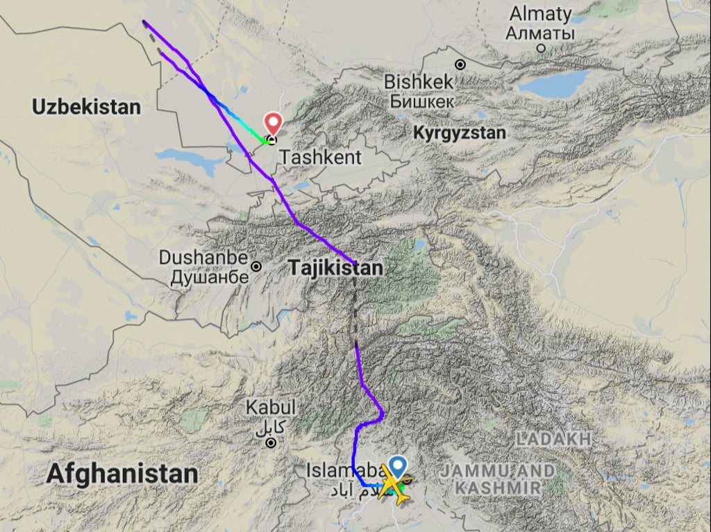 Instead, the plane touched down at Tashkent’s Islam Karimov airport close midnight, local time, on Tuesday.