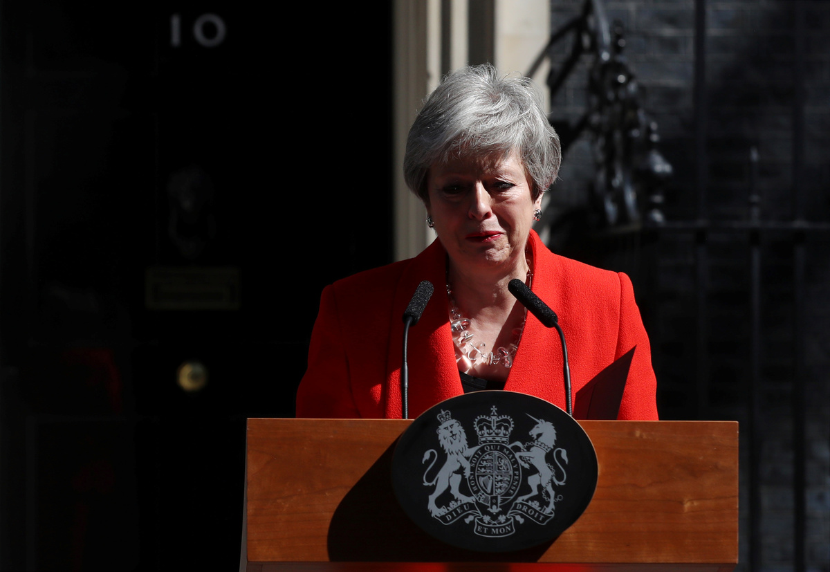 May announced on Friday she was quitting over her failure to deliver Brexit, raising the prospect of a new leader who could seek a more divisive split with the EU which could lead to confrontation with the bloc or a possible parliamentary election.