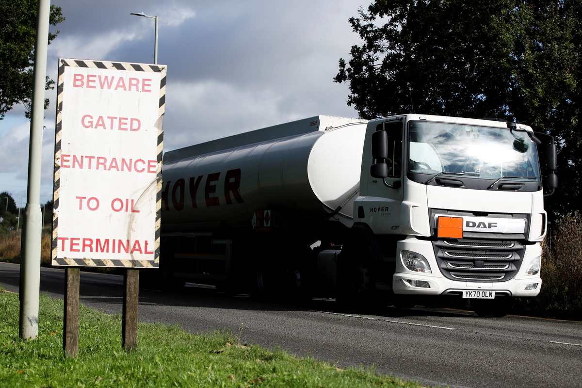 British military personnel in fatigues were driving fuel trucks on Tuesday at a fuel depot in southern England, Reuters reporters at the scene said.