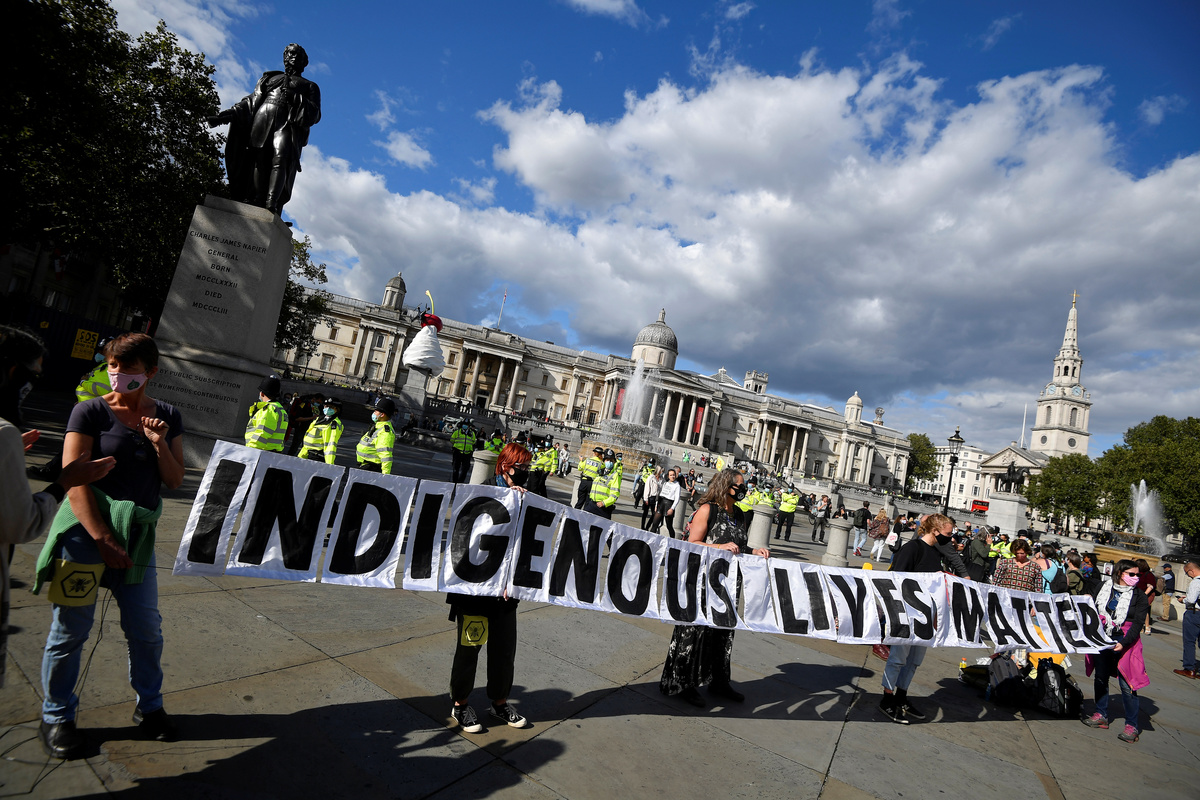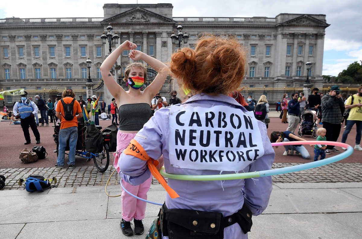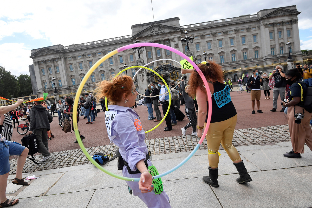 On Saturday it also protested in central London, including holding a "die-in" in front of Buckingham Palace, where demonstrators lay under white sheets to represent corpses.