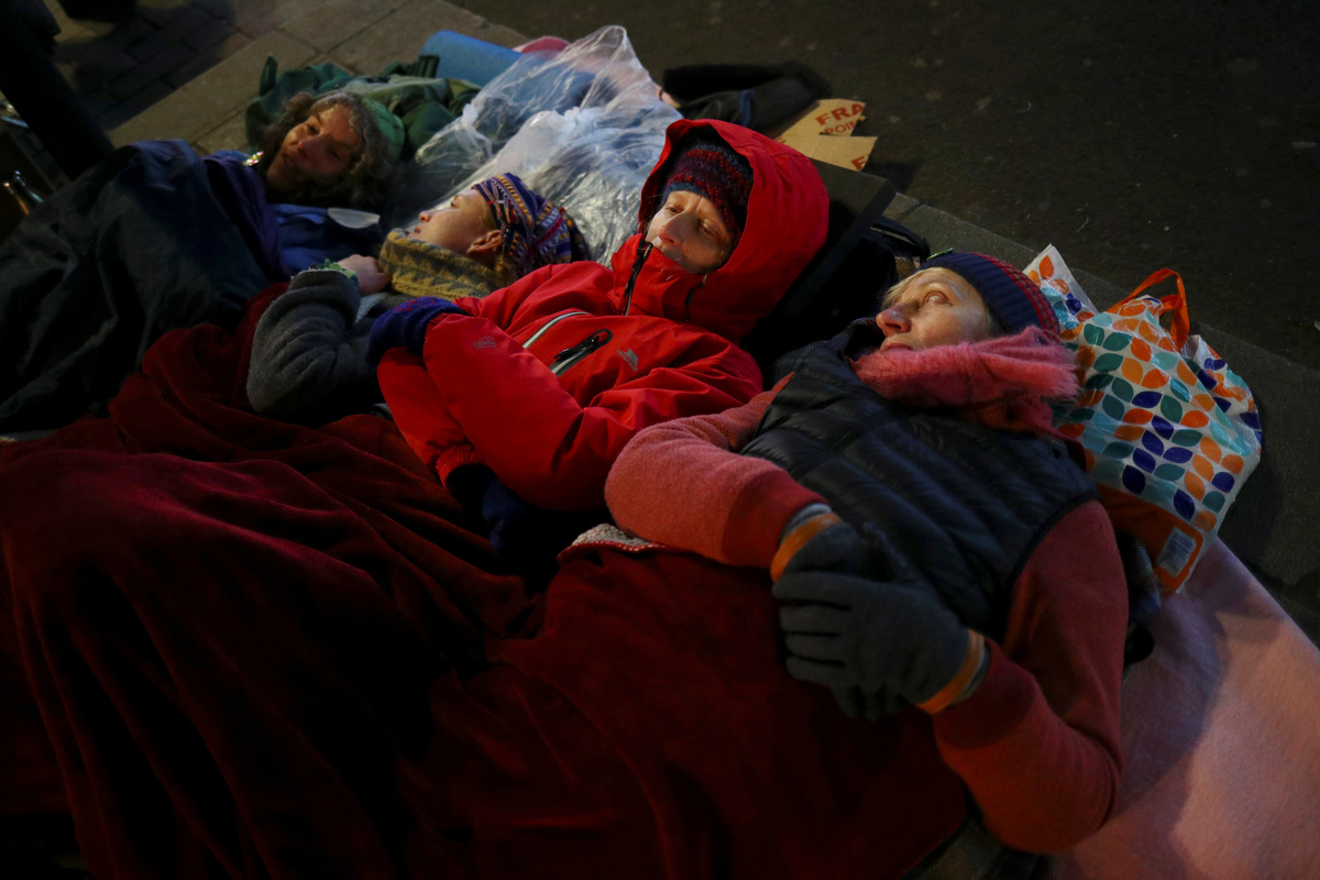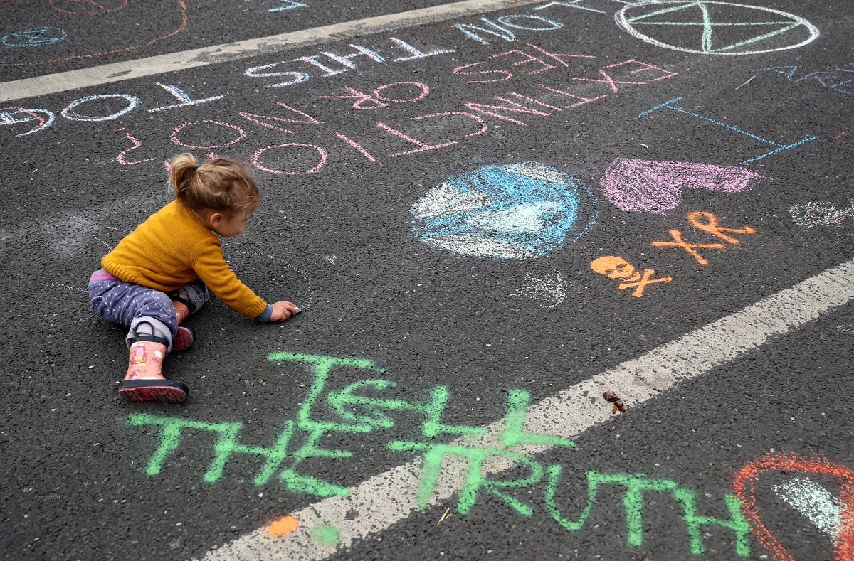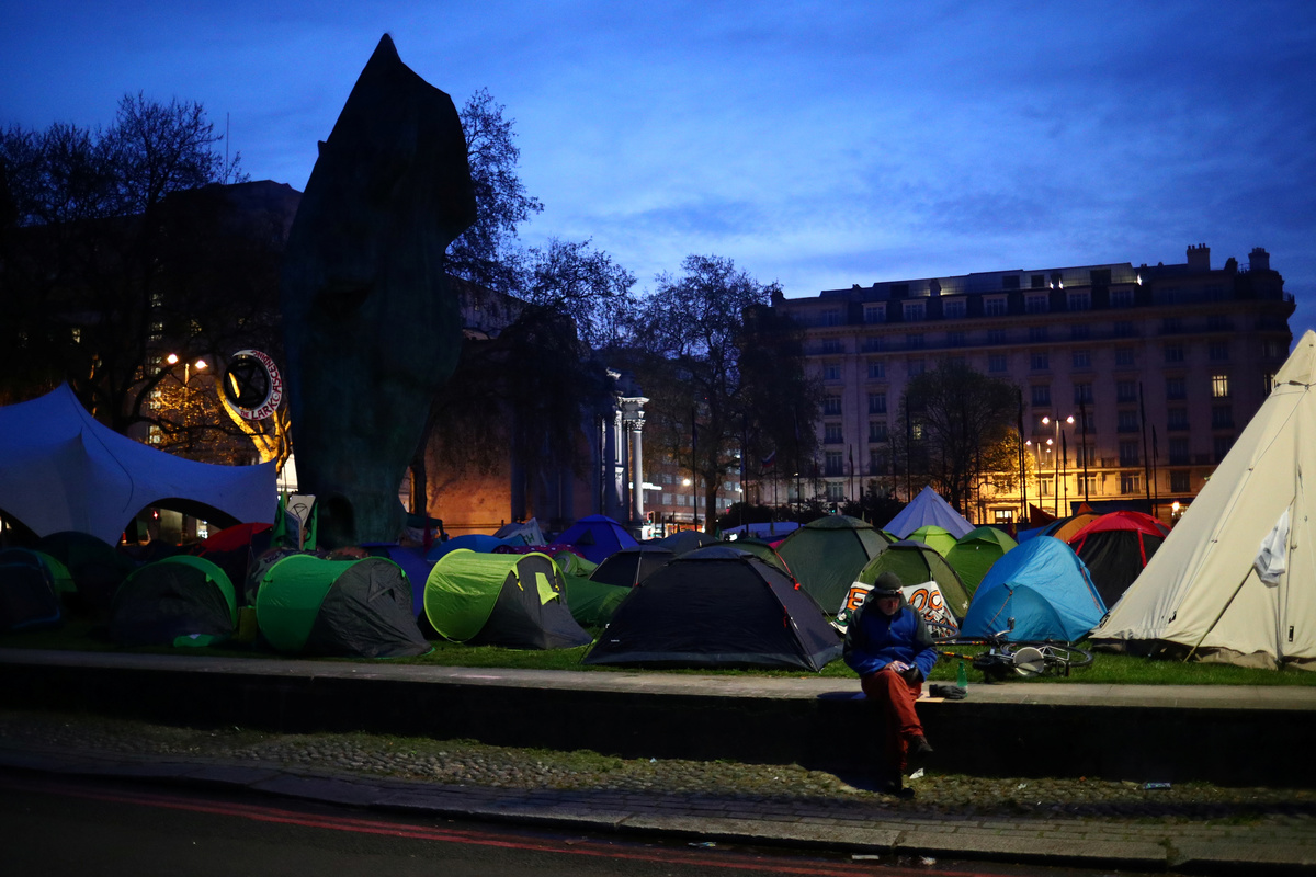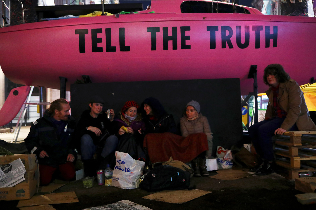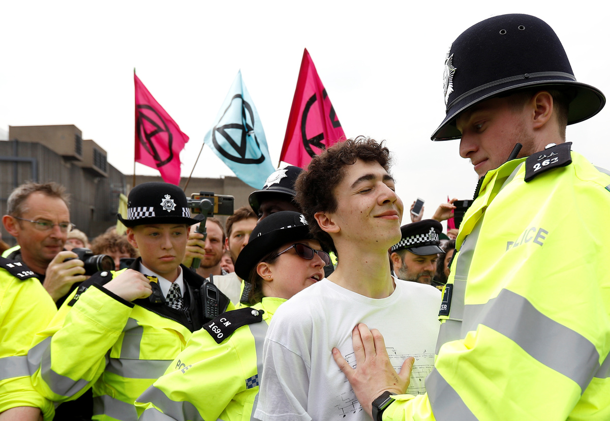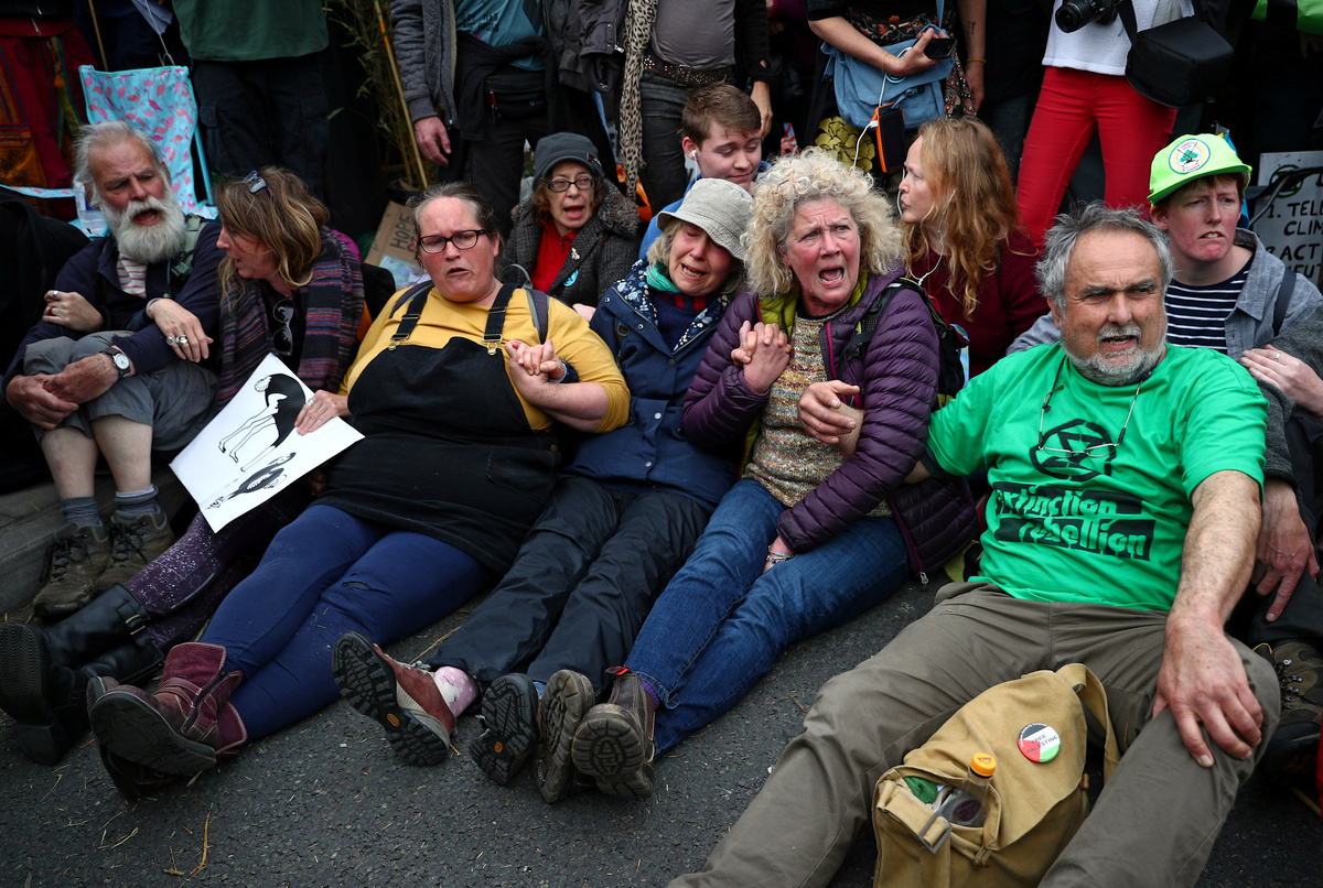 A climate change activist walks along Waterloo Bridge during a blockage during the Extinction Rebellion protest in London, Britain April 16, 2019. REUTERS/Hannah McKayA police officer approaches a climate change activist at Waterloo Bridge during the Extinction Rebellion protest in London, Britain April 16, 2019. REUTERS/Peter NichollsA climate change activist walks along Waterloo Bridge during a blockage during the Extinction Rebellion protest in London, Britain April 16, 2019. REUTERS/Hannah McKayClimate change activists arrive at Waterloo Bridge during the Extinction Rebellion protest in London, Britain April 16, 2019. REUTERS/Peter NichollsClimate change activists block Westminster Bridge during the Extinction Rebellion protest in London, Britain April 16, 2019. REUTERS/Peter NichollsA girl draws on the street of Waterloo Bridge during the Extinction Rebellion protest in London, Britain April 16, 2019. REUTERS/Hannah McKayProtesters sit on Waterloo Bridge during the Extinction Rebellion protest in London, Britain April 16, 2019. REUTERS/Hannah McKayPolice officers detain a climate change activist at Waterloo Bridge during the Extinction Rebellion protest in London, Britain April 16, 2019. REUTERS/Hannah McKayPolice officers detain a climate change activist at Waterloo Bridge during the Extinction Rebellion protest in London, Britain April 16, 2019. REUTERS/Peter NichollsClimate change activists sit in a boat on the River Thames during the Extinction Rebellion protest in London, Britain April 16, 2019. REUTERS/Peter NichollsA climate change activist walks across Waterloo Bridge during the Extinction Rebellion protest in London, Britain April 16, 2019. REUTERS/Peter NichollsClimate change activists block a road during the Extinction Rebellion protest at Parliament Square in London, Britain April 16, 2019. REUTERS/Hannah McKayClimate change activists rest during a Extinction Rebellion protest at Oxford Circus in London, Britain April 16, 2019. REUTERS/Hannah McKayClimate change activists rest during a Extinction Rebellion protest at Oxford Circus in London, Britain April 16, 2019. REUTERS/Hannah McKaySigns are seen near climate change activists resting during a Extinction Rebellion protest at Oxford Circus in London, Britain April 16, 2019. REUTERS/Hannah McKayA climate change activist walks between tents during a Extinction Rebellion protest at Marble Arch in London, Britain April 16, 2019. REUTERS/Hannah McKayClimate change activists sit on the road during a Extinction Rebellion protest at Marble Arch in London, Britain April 16, 2019. REUTERS/Hannah McKayA man sits in front of the tents of climate change activists during a Extinction Rebellion protest at Marble Arch in London, Britain April 16, 2019. REUTERS/Hannah McKayClimate change activists demonstrate during a Extinction Rebellion protest at Oxford Circus in London, Britain April 16, 2019. REUTERS/Hannah McKay