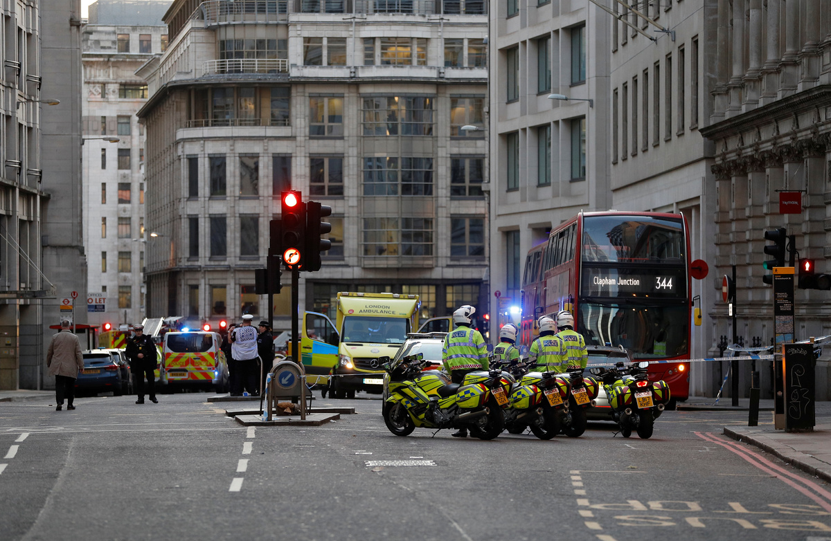 Britain's top counter-terrorism officer, Neil Basu, said specialist armed officers from the City of London police shot the suspect, who died at the scene. He said a hoax explosive device was strapped to his body.