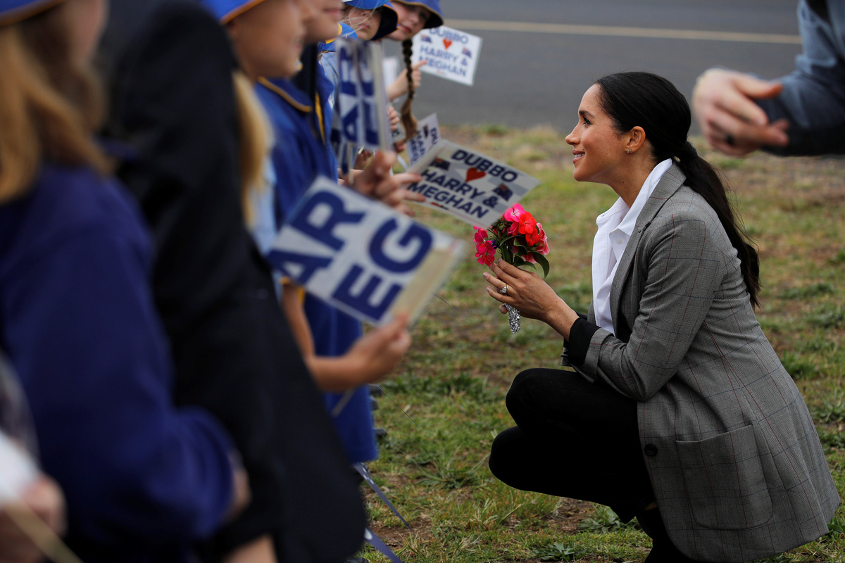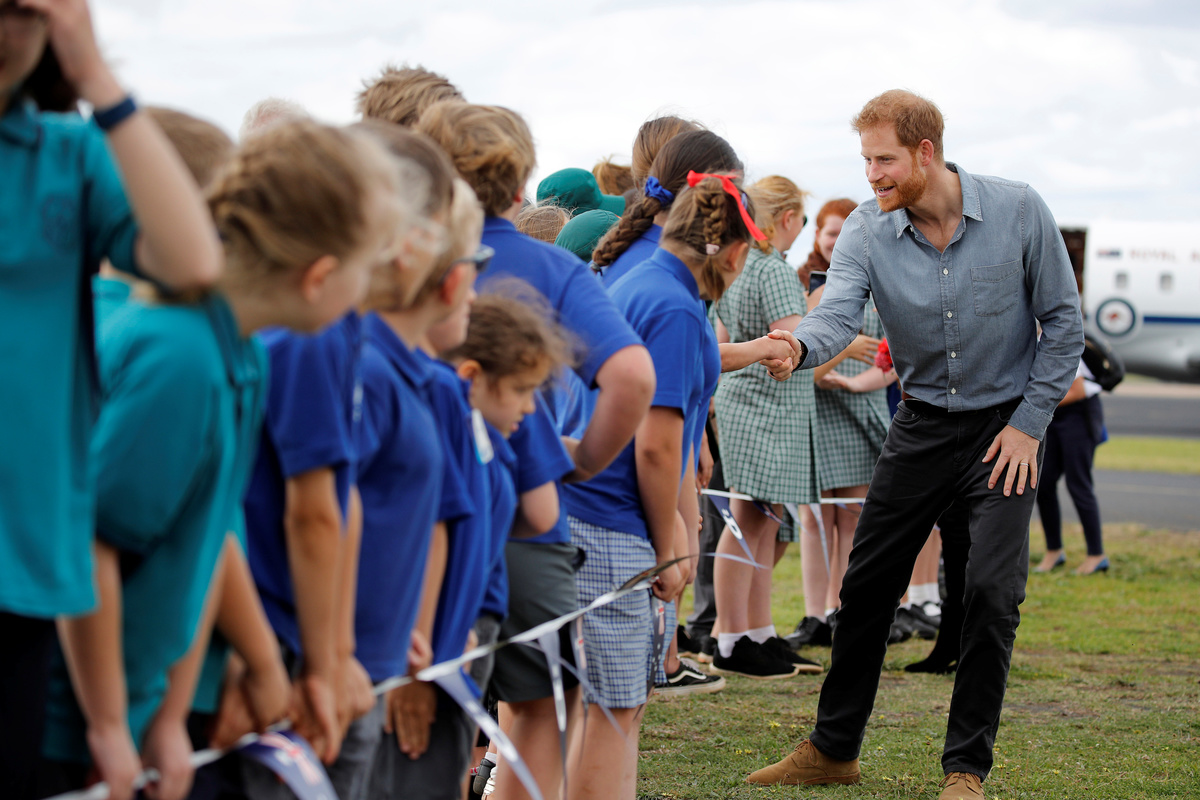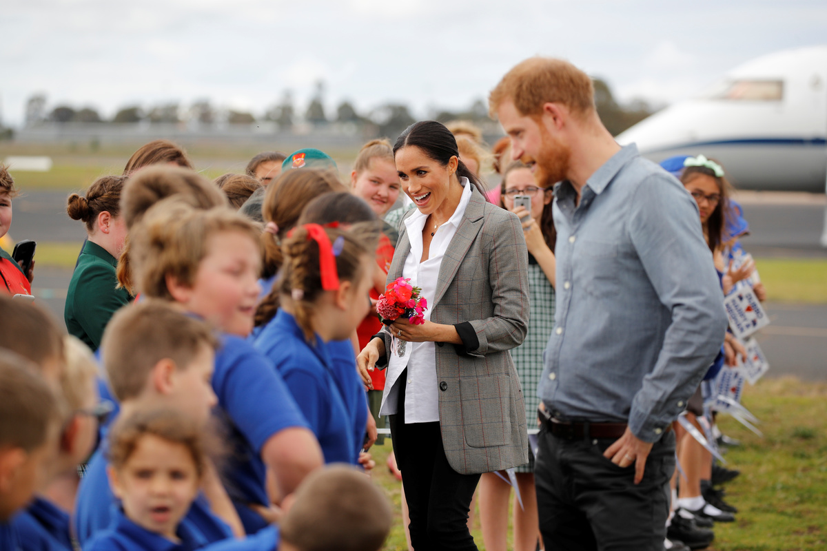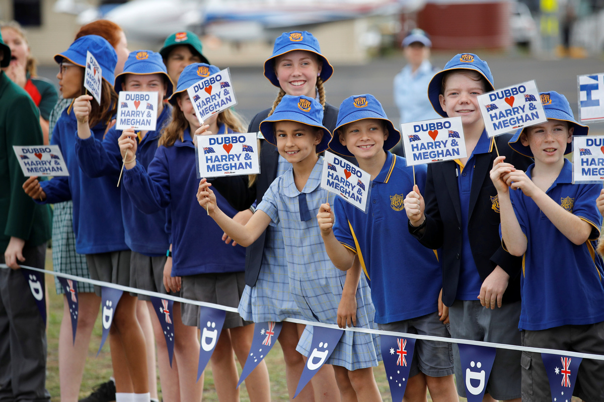 Britain's Prince Harry and Meghan, Duchess of Sussex, interact with children from Dubbo South Public School after arriving at Dubbo airport, Dubbo, Australia October 17, 2018. REUTERS/Phil NobleChildren wave Australia's national flags during a community picnic with Britain's Prince Harry and his wife Meghan, Duchess of Sussex, at Victoria Park in Dubbo, Australia October 17, 2018. REUTERS/Phil NobleBritain's Prince Harry and Meghan, Duchess of Sussex, interact with Luke Vincent, 5, after arriving at Dubbo airport, Dubbo, Australia October 17, 2018. REUTERS/Phil NobleBritain's Prince Harry and Meghan, Duchess of Sussex, interact with children from Dubbo South Public School after arriving at Dubbo airport, Dubbo, Australia October 17, 2018. REUTERS/Phil NobleBritain's Prince Harry and Meghan, Duchess of Sussex attend the naming and unveiling of a new Royal Flying Doctor Service aircraft at Dubbo City Regional Airport, in Dubbo, New South Wales, on the second day of the royal couple's visit to Australia. Wednesday October 17, 2018. Dominic Lipinski /Pool via REUTERSChildren from Dubbo South Public School wave signs while waiting for Britain's Prince Harry and his wife Meghan, Duchess of Sussex, to arrive at Dubbo airport, Dubbo, Australia October 17, 2018. REUTERS/Phil NobleBritain's Prince Harry and his wife Meghan, Duchess of Sussex, arrive at Dubbo airport, Dubbo, Australia October 17, 2018. REUTERS/Phil NobleBritain's Prince Harry and his wife Meghan, Duchess of Sussex, arrive at Dubbo airport, Dubbo, Australia October 17, 2018. REUTERS/Phil NobleBritain's Prince Harry and his wife Meghan, Duchess of Sussex, arrive at Dubbo airport, Dubbo, Australia October 17, 2018. REUTERS/Phil Noble